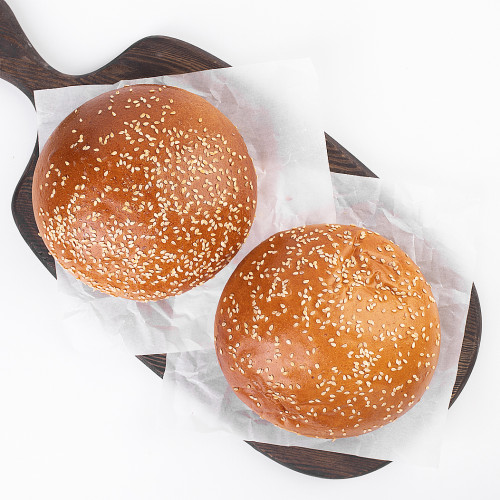 В упаковке 2 замороженные булочки с кунжутом диаметром 120 мм.