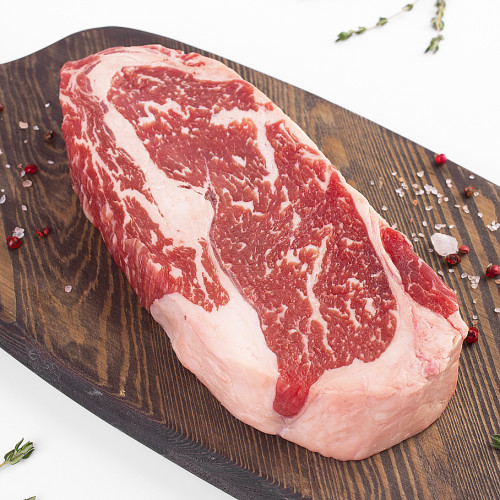 Из всех премиальных стейков рибай считается самым мраморным (именно по его срезу определяют мраморность всей туши). Этому способствует долгий 200-дневный кукурузный откорм бычка. Маленькие прослойки при приготовлении наполняют мясо соком, делая его невероятно сочным, нежным и ароматным.